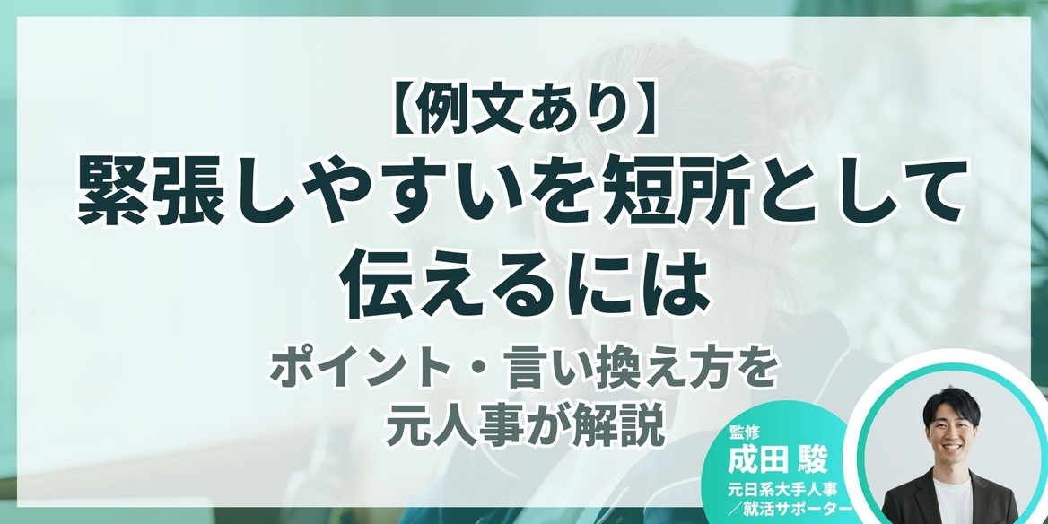 今回は、元日系大手人事で、キャリアアドバイザーとして延べ3,000名以上の学生を支援してきた成田さんの知見をもとに、緊張しやすいを短所として効果的に伝える方法を解説します。