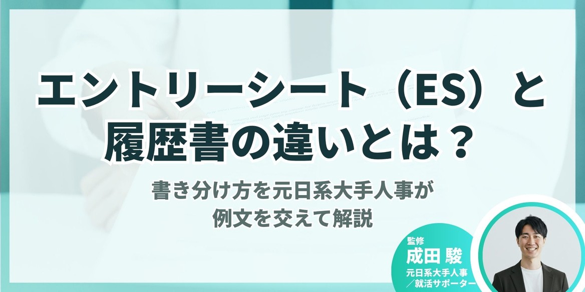 今回は、元日系大手人事で、キャリアアドバイザーとして延べ3,000名以上の学生を支援してきた成田さんの知見をもとに、ESと履歴書の違いや共通項目の書き分け方、自己PR・志望動機・趣味特技の例文、注意点を解説します。