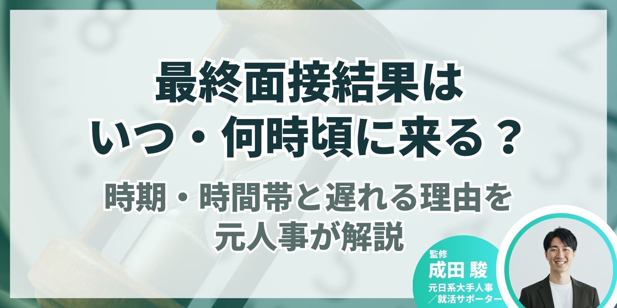 キャリアアドバイザーとしてこれまで数千人規模の就活生を支援してきた成田さんによると、結果連絡の目安を知っておくだけで、不安が軽減されるケースが多いそうです。ここでは、最終面接の結果連絡が届くまでの一般的な日数や時間帯、連絡方法について解説します。