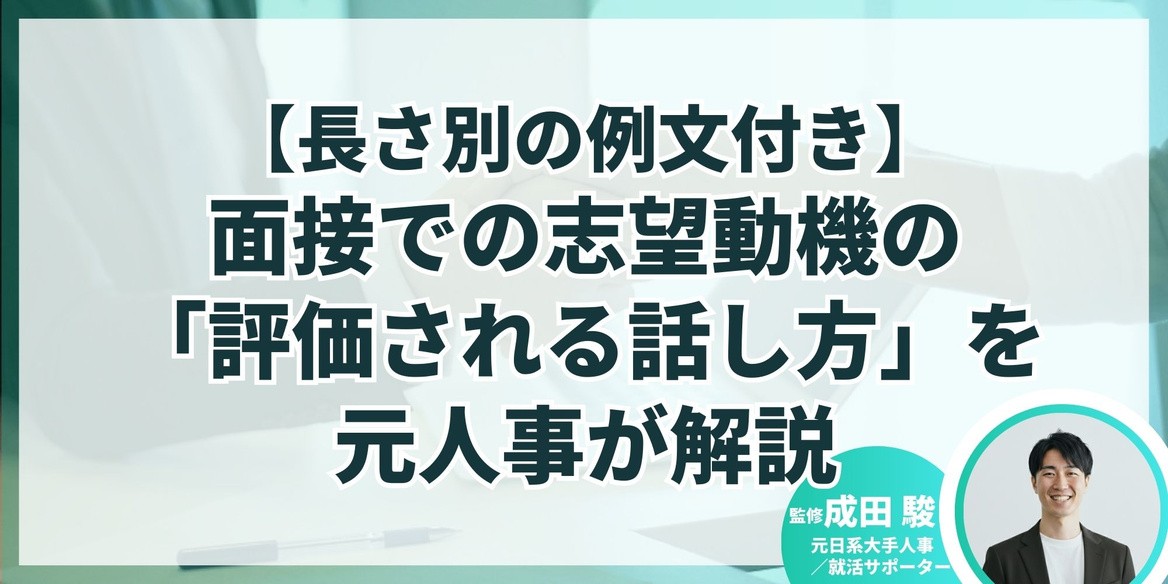今回は、元日系大手人事で、キャリアアドバイザーとして延べ3,000名以上の学生を支援してきた成田さんの知見をもとに、面接官が本当に評価している志望動機の話し方のコツを解説します。さらに、30秒・1分・2分と長さ別のテンプレート・例文も豊富にご用意しました。記事を最後まで読めば、面接本番で自信を持って志望動機を語れるようになるはずです。