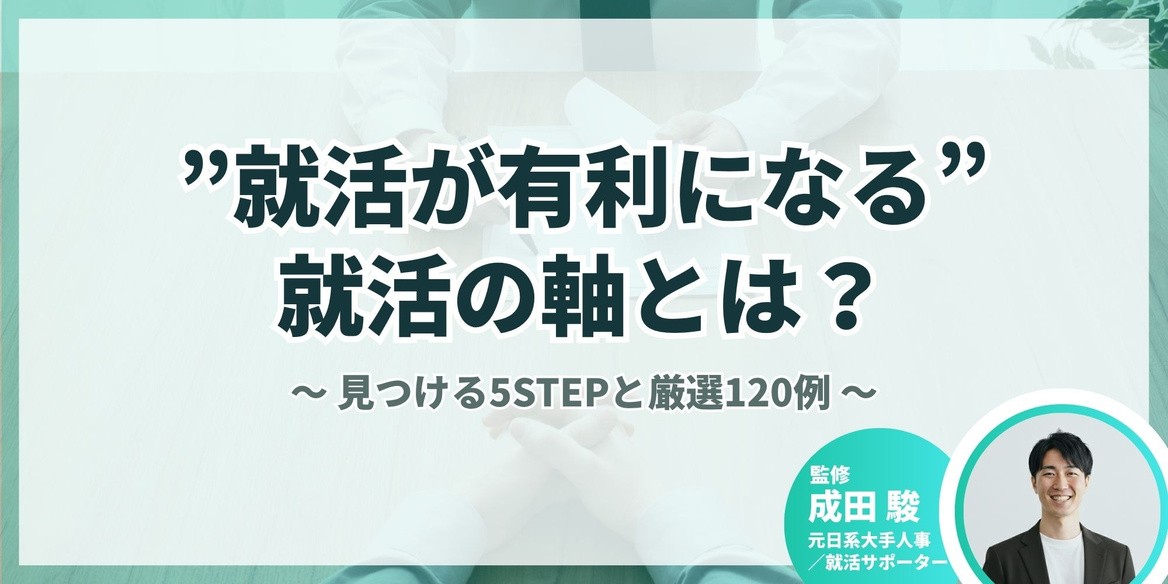 今回は、元日系大手人事で、キャリアアドバイザーとして延べ3,000名以上の学生を支援してきた成田さんの知見をもとに、「"就活が有利になる"就活の軸の見つけ方」を徹底解説します。軸を言語化するヒントになる「厳選120例」や、ES・面接で就活の軸を答えるときのポイントもご紹介します。