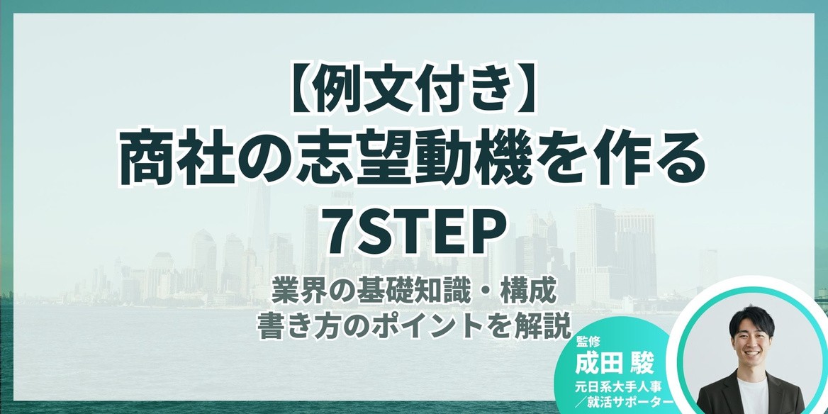 本記事では、元日系大手人事で、キャリアアドバイザーとして延べ3,000名以上の学生を支援してきた成田さんの解説と、就活生へのインタビューを基に、採用担当者に響く志望動機を作る7つのステップをお伝えします。業界の基礎知識から構成・書き方のポイント、業態・職種別の例文まで掲載していますので、ぜひお役立てください。