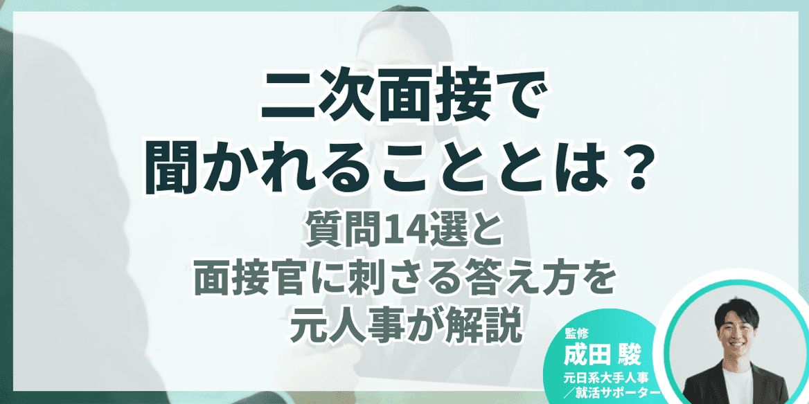今回は、元日系大手人事で、キャリアアドバイザーとして延べ3,000名以上の学生を支援してきた成田さんの知見をもとに、二次面接で聞かれる頻出質問と回答例、通過するためのポイントを解説します。