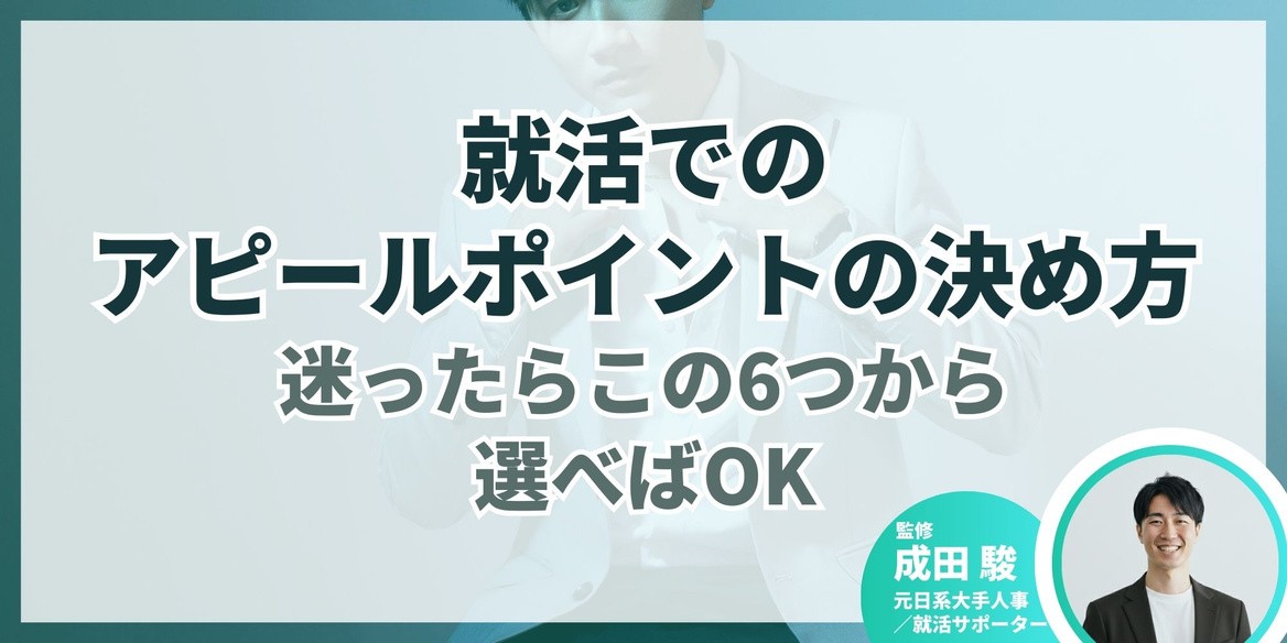 実は、アピールポイントは「選ぶこと」より「解像度を上げること」が重要です。選択肢が多すぎて迷っている人も、まずは6つの中から選び、そこから具体化していけば大丈夫です。