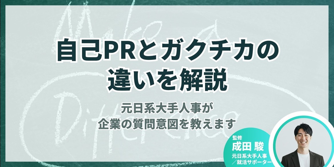 今回は、元日系大手人事で、キャリアアドバイザーとして延べ3,000名以上の学生を支援してきた成田さんの監修のもと、自己PRとガクチカの本質的な違いから、企業の質問意図、具体的な書き分け方、さらには同じエピソードを使う際の差別化テクニックまで、実践的なノウハウを詳しく解説します。