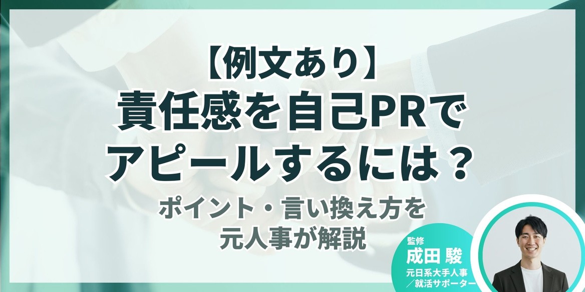 ここでは、成田さんがキャリアアドバイザーとして自己PRを添削する中で、実際に評価が上がりやすかった書き方のパターンを踏まえ、責任感を効果的にアピールするための例文を紹介します。あわせて、どこが評価されやすいのかもポイントとして解説します。